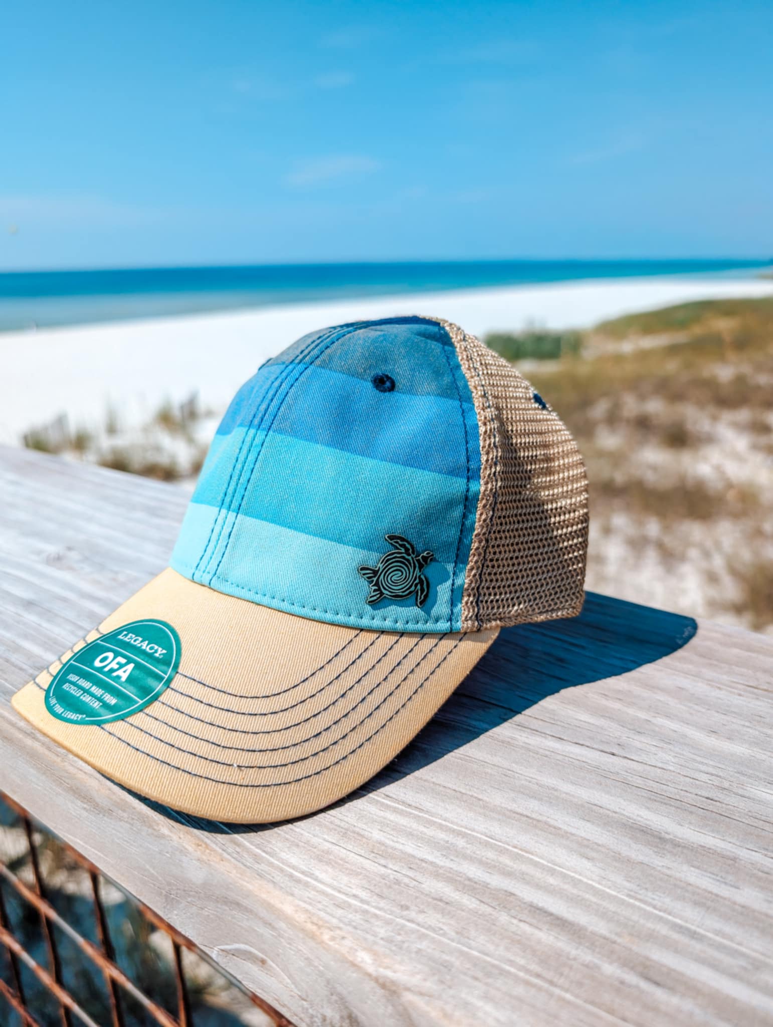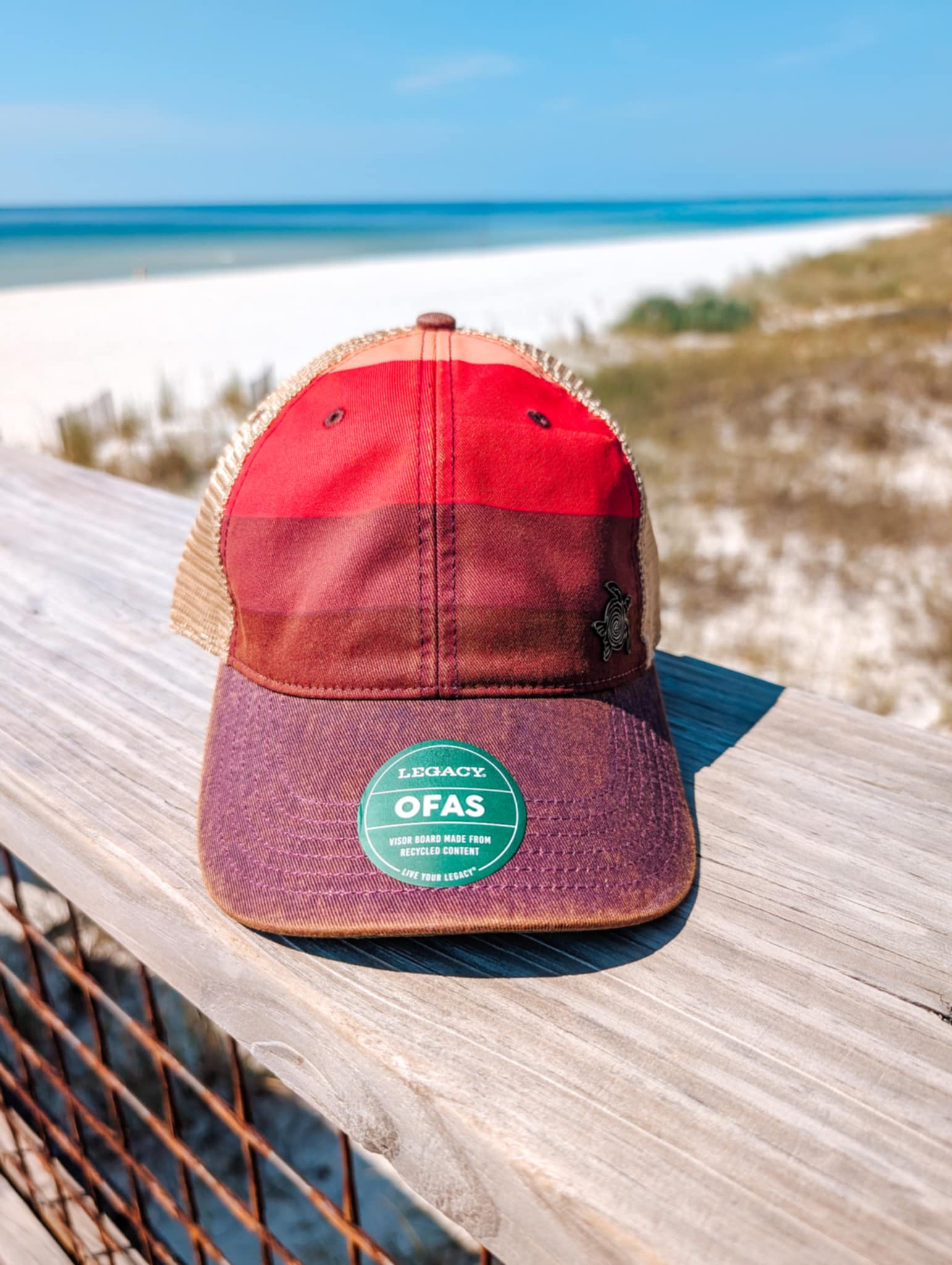 LEGACY Old Favorite Trucker Cap available in blue or red stripes